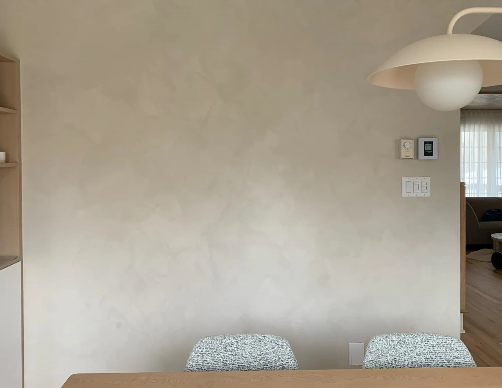 Limewash creates a quiet, mineral surface with visible depth—often chosen when you want walls to feel “alive” in changing light, without sheen.