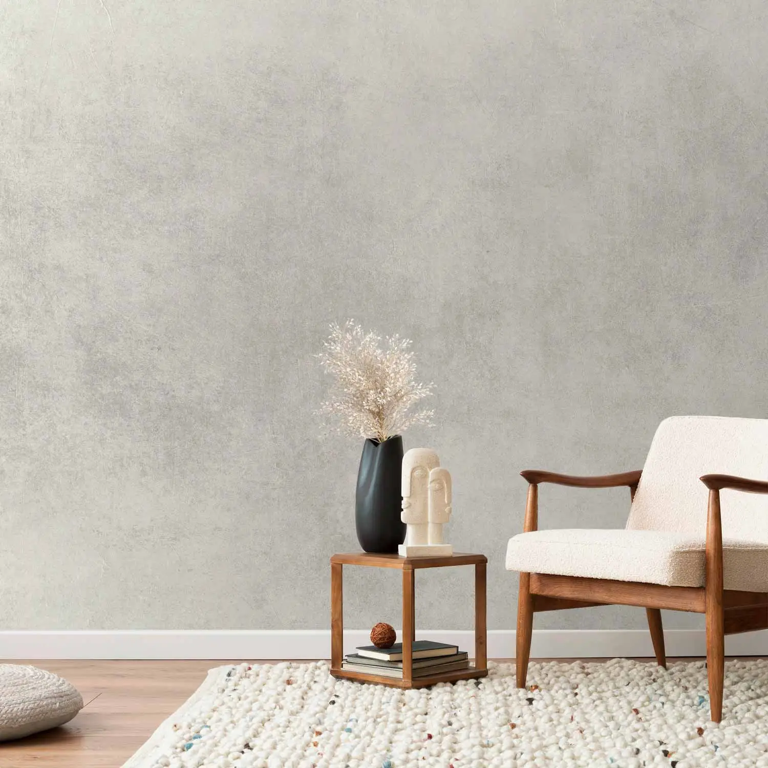 A breathable lime-based coating for walls and ceilings—chalky matte, softly layered and never perfectly uniform.